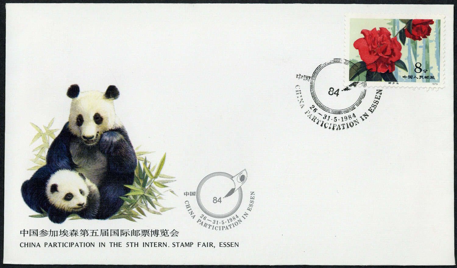 "CHINA 26-31.5.1984 PARTICIPATION IN ESSEN", SST auf Schmuckumschlag mit 8 F. Kamelien