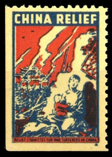 "CHINA RELIEF", postfrische Vignette in rot/blau, zweiseitig gezähnt, links und unten ungezähnt