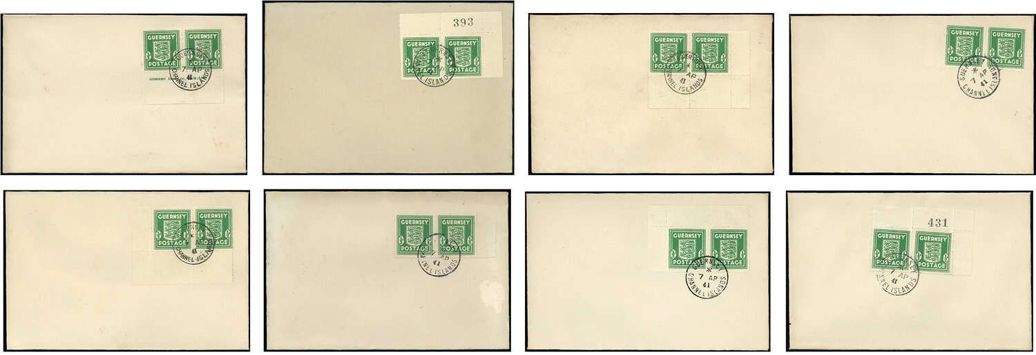 DT. II. WELTKRIEG GUERNSEY: 200 x 1/2 Pence Freimarke "Wappen" zu jeweils 2 Stück auf Brief vom 7.4.1941 (Ersttagsbrief für die Farbe "d"). Im Michel- Spezial 2023 gibt es keine Preisnotierung für Ersttagsbriefe!