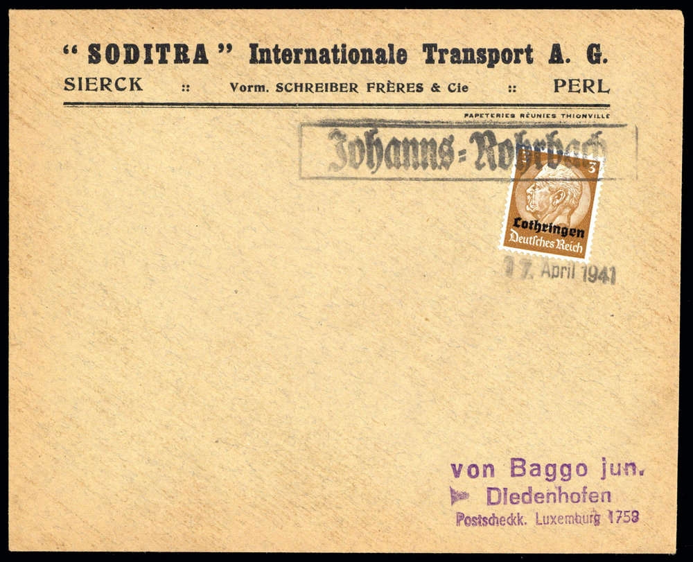 "JOHANNS-ROHRBACH", Ra und "17. April 1941" auf phil. Brief mit 3 Pfg. Hindenburg