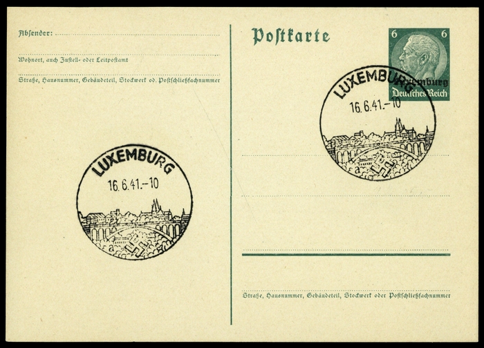 "LUXEMBURG 16.6.41", Hakenkreuz-SST auf 6 Pfg. Hindenburg-Ganzsache