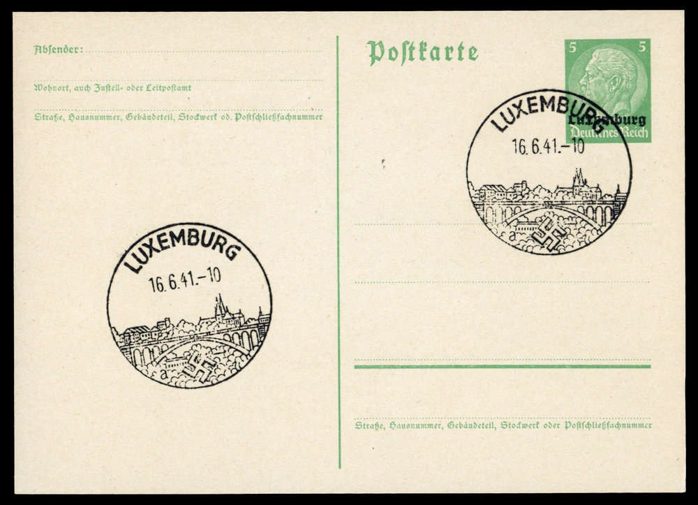 "LUXEMBURG 16.6.41", Hakenkreuz-SST auf 5 Pfg. Hindenburg-Ganzsache