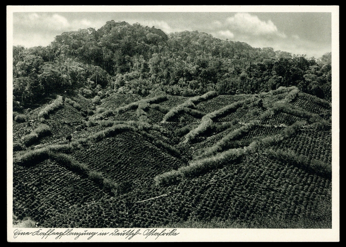 "KAFFEEPFLANZUNG IN DOA", s/w-Karte, ungebraucht, Dobbertin Kolonialkarte 6 Reihe 4