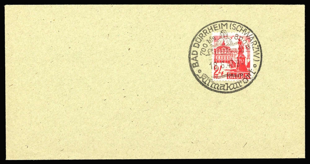 "BAD DÜRRHEIM 18.6.47 KLIMAKURORT", Ortswerbestempel auf Blankobrief mit 24 Pfg. Rastatt