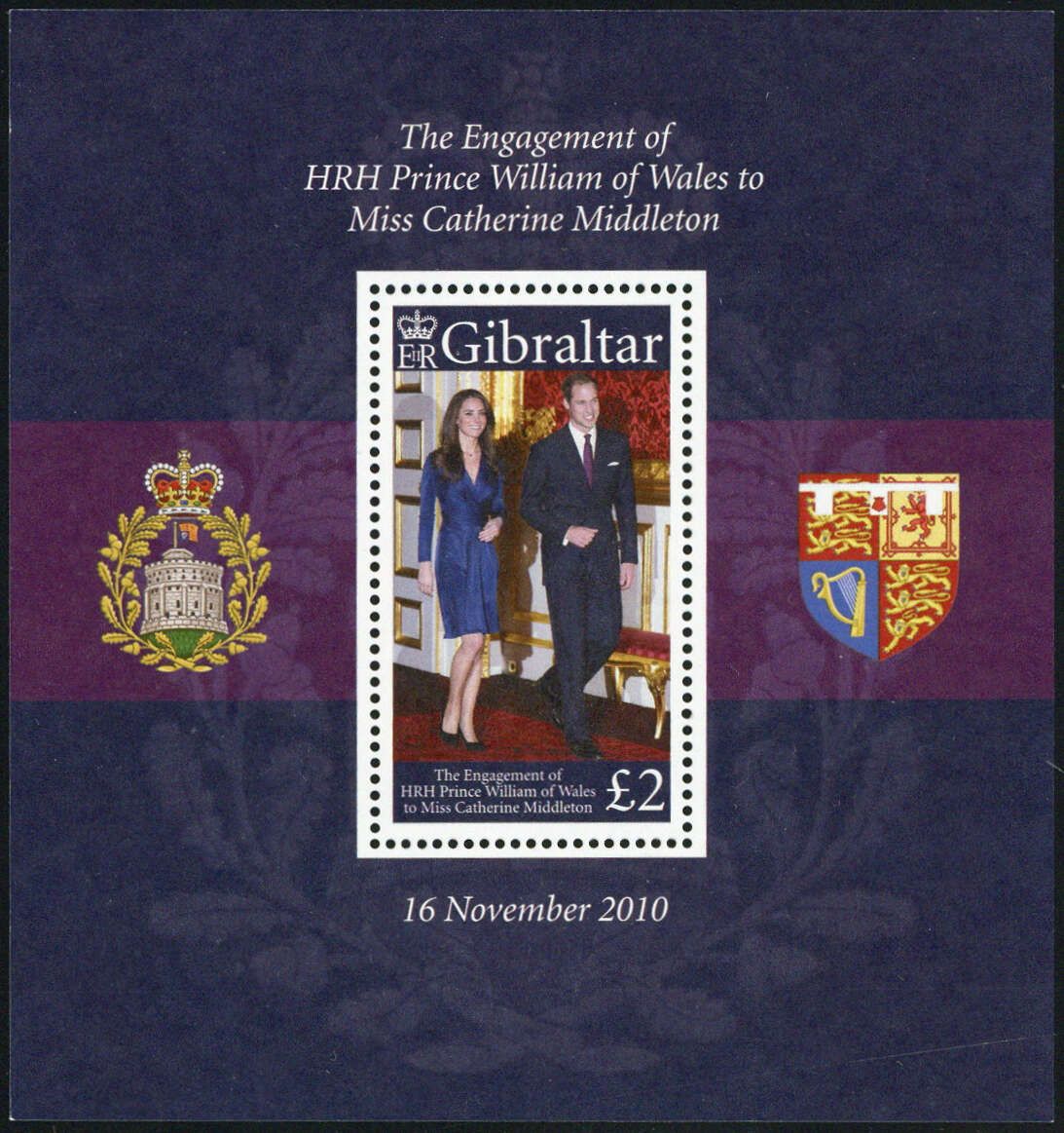GIBRALTAR: 10.000 postfrische Blockausgaben "Verlobung von Prinz William und Catherine Middleton" in Originalgrösse. Enormer Postpreis von 20.000 Pfund und einem Katalogwert von Michel 2023/2024 = 70.000.- Euro !