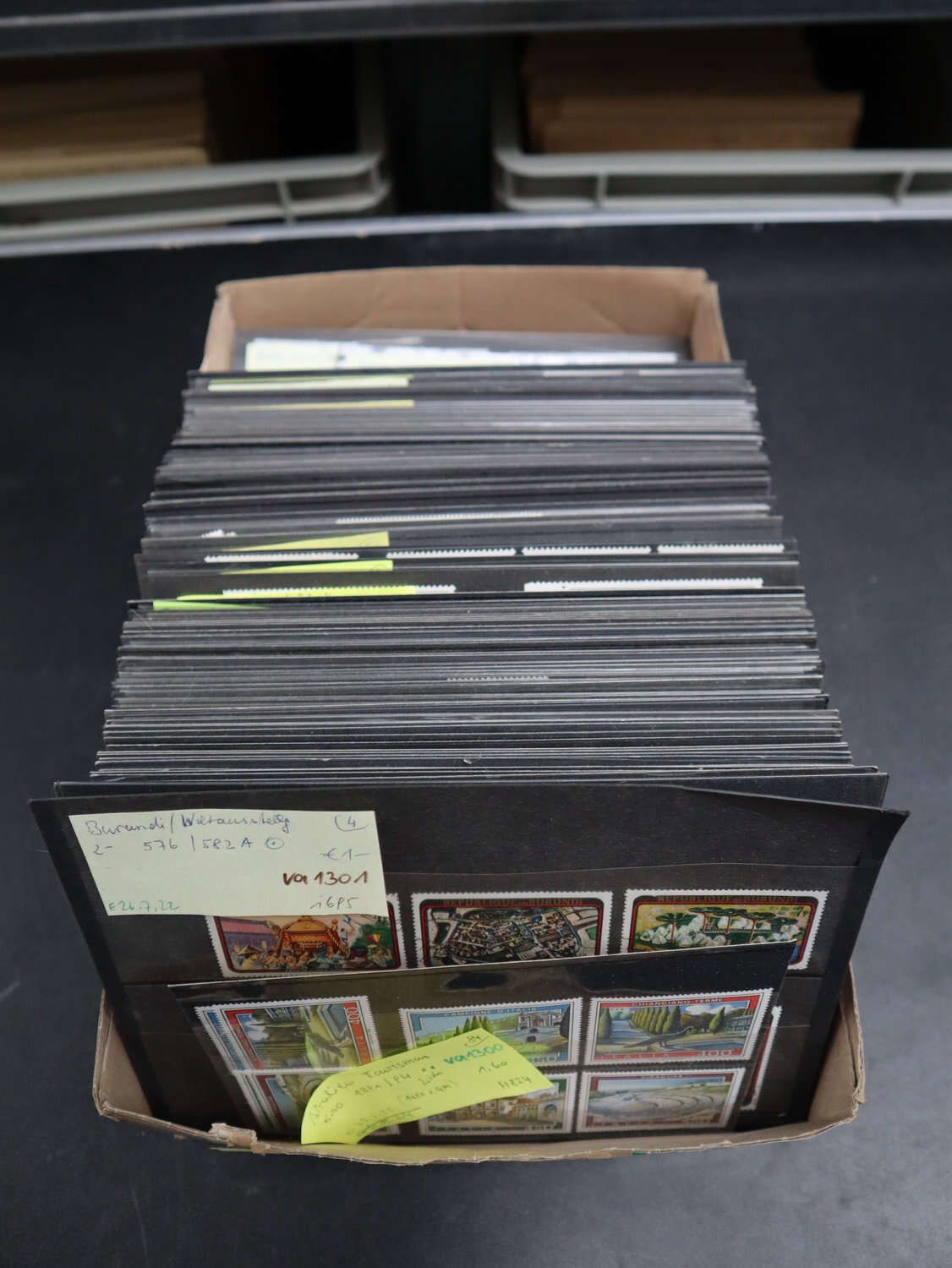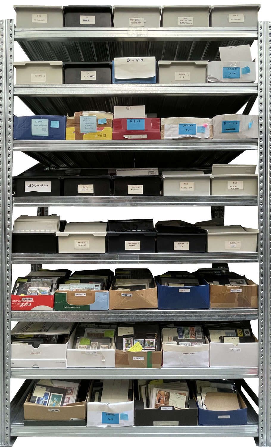EBAY HÄNDLERNACHLASS: Mit diesem Los können Sie den Briefmarkenbestand eines ehemaligen "Ebay Shops" komplett übernehmen. Die Artikel sind mit Post- It`s versehen und mit der firmeninternen Lagernummer und anderen Notizen markiert. Zahlreiche Artikel sind mehrfach vorhanden, wobei die Summe aller Artikel, wenn sie nur einmal berechnet sind, insgesamt über 80.000.- Euro ergibt. Von diesem Bestand gibt es eine Excel- Liste (aber nur mit der Anzahl "1" pro Artikel). Alleine der Nominalwert nur von Bund, Österreich, Grossbritannien und Schweiz hat der ehemalige Händler dieses Bestandes auf ca. 10.000.- Euro berechnet. Der Käufer dieses Loses kann gerne einen USB- Stick erhalten, auf dem auch die Bilder und Texte der Briefmarken gespeichert sind.