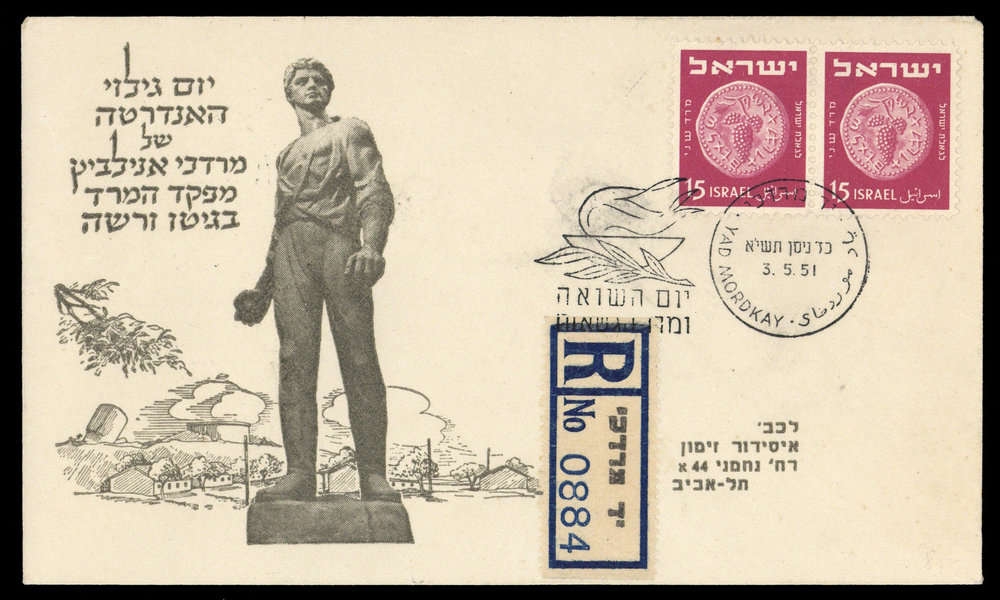 "YAD MORDKAY 3.5.51", K1 auf 15 (Pr) Münzen im Paar, Schmuck-R-Brief, nach "TAL AVIV-YAFO 3.5.51"