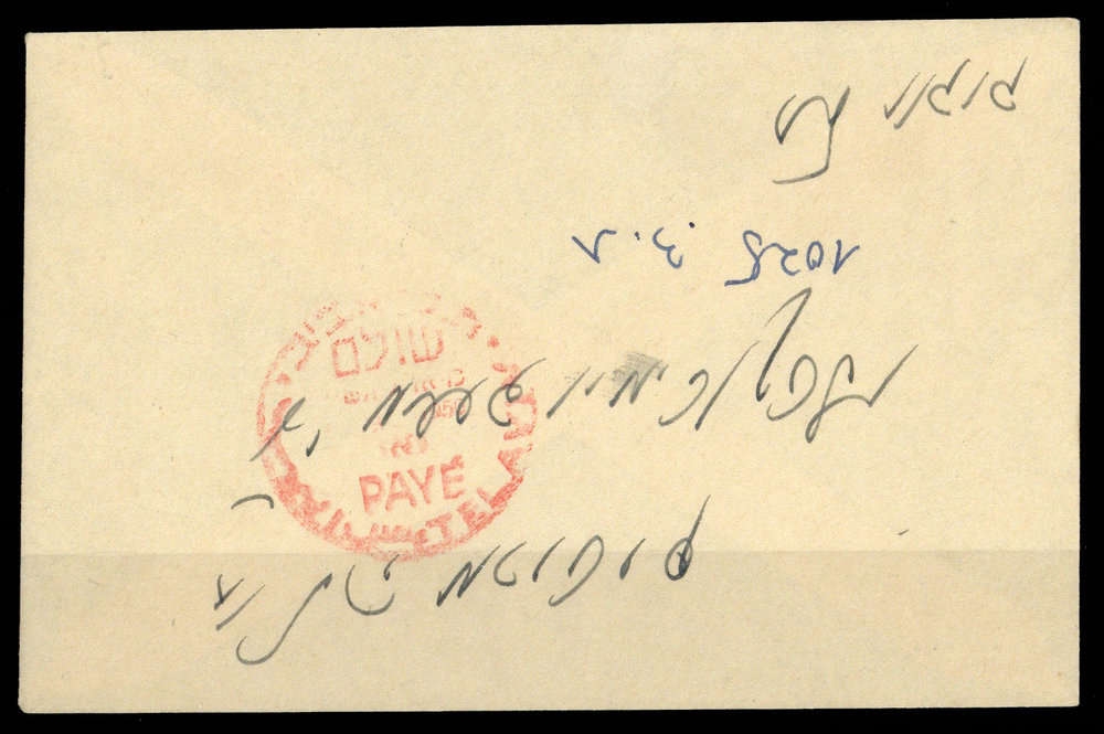 "TEL AVIV PAYÉ ...1950", roter K1 auf kleinem Briefchen