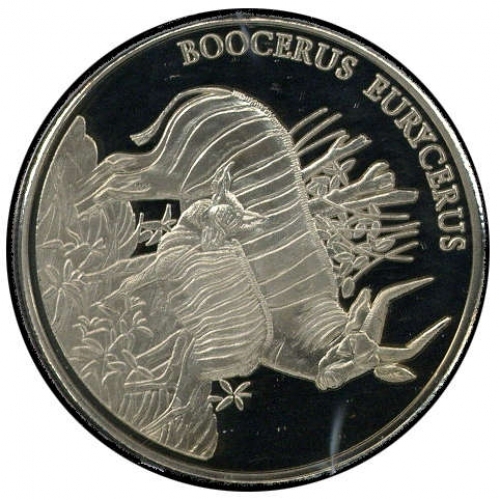 WWF: 1984, dekorative und offizielle Sondermünze "Bongo - Boocercus eurycerus" im Durchmesser 40 mm für den offiziellen WWF-Numisbrief von Ghana