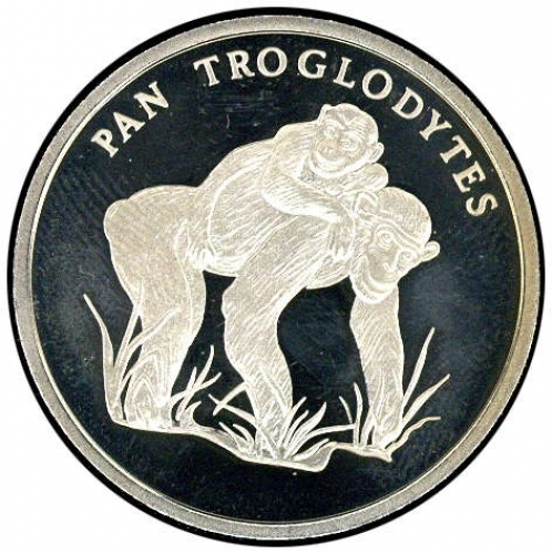 WWF: 1983, dekorative und offizielle Sondermünze "Schimpanse - Pan troglodytes" im Durchmesser 40 mm für den offiziellen WWF-Numisbrief von Sierra Leone