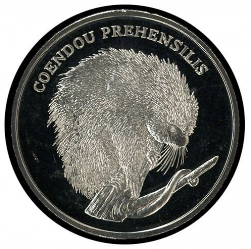 WWF: 2008, dekorative und offizielle Sondermünze "Greifstachler - Coendou prehensilis" im Durchmesser 40 mm für den offiziellen WWF-Numisbrief von Trinidad und Tobago
