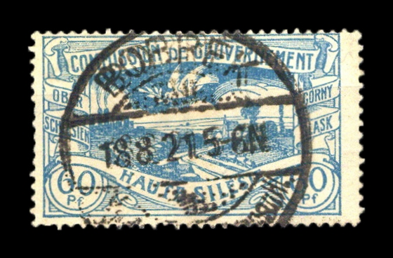 "BOBREK 18.8.21" als Teilabschlag auf 60 Pfg. Landschaften mit unregelmäßiger Zähnung (Gruber 028.1 E, 60 Punkte)