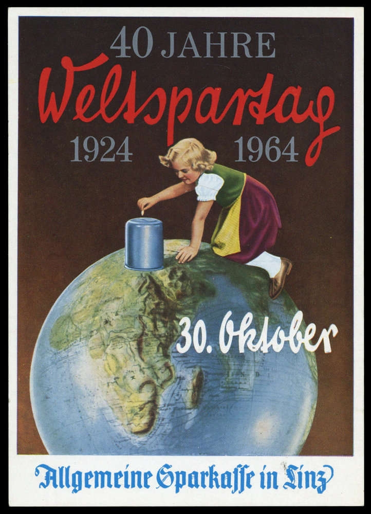 "LINZ 30.10.1964 - 40 JAHRE WELTSPARTAG" auf farbiger Sonderkarte mit Nr. 1174 frankiert, sehr dekorativ !
