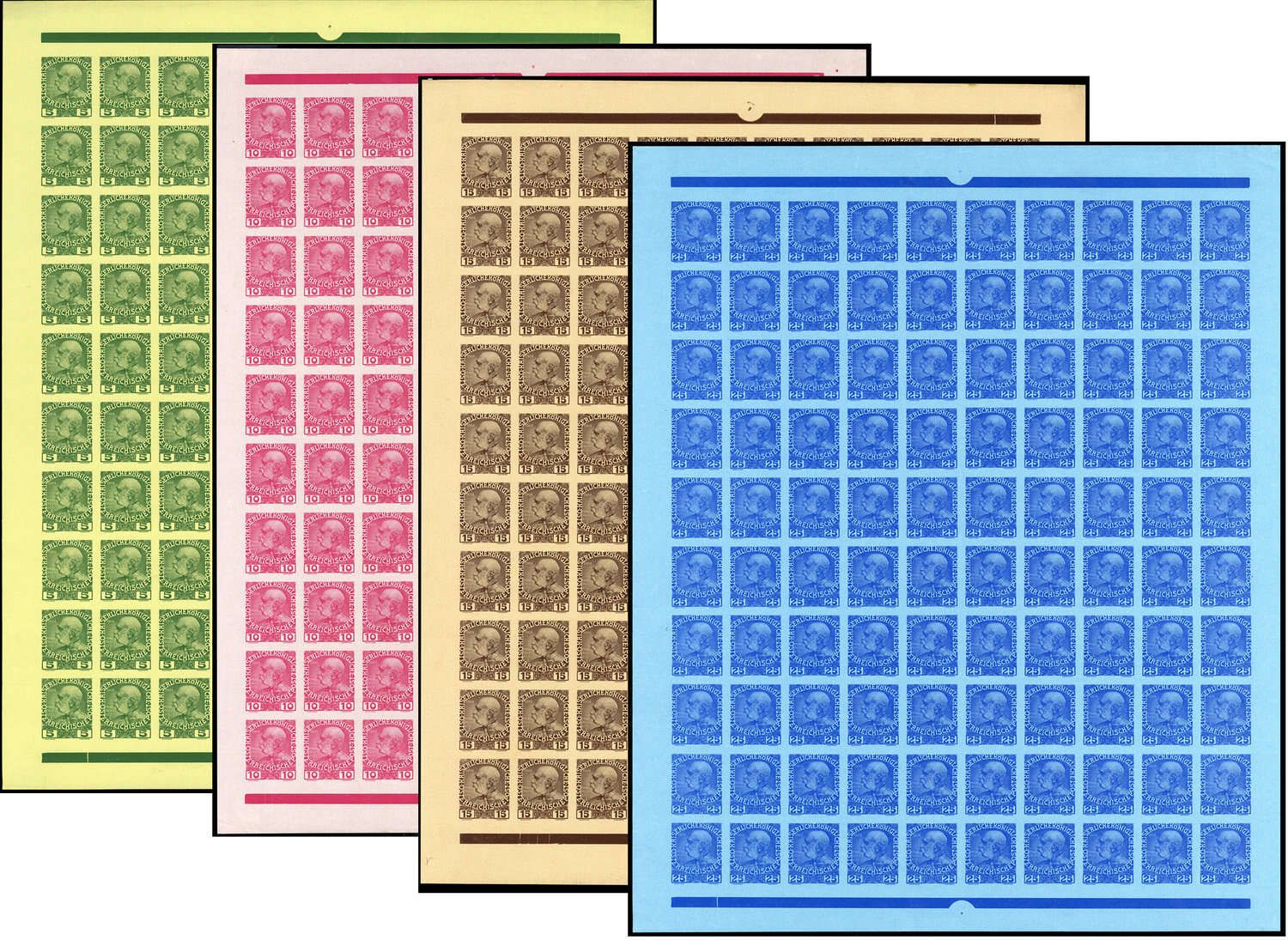 ÖSTERREICH KRETA: 5 bis 25 C. Kaiser Franz Joseph - MiNr. 17-20 U jeweils 100 Stück in ungezähnter Erhaltung auf ungummiertem Papier hergestellt