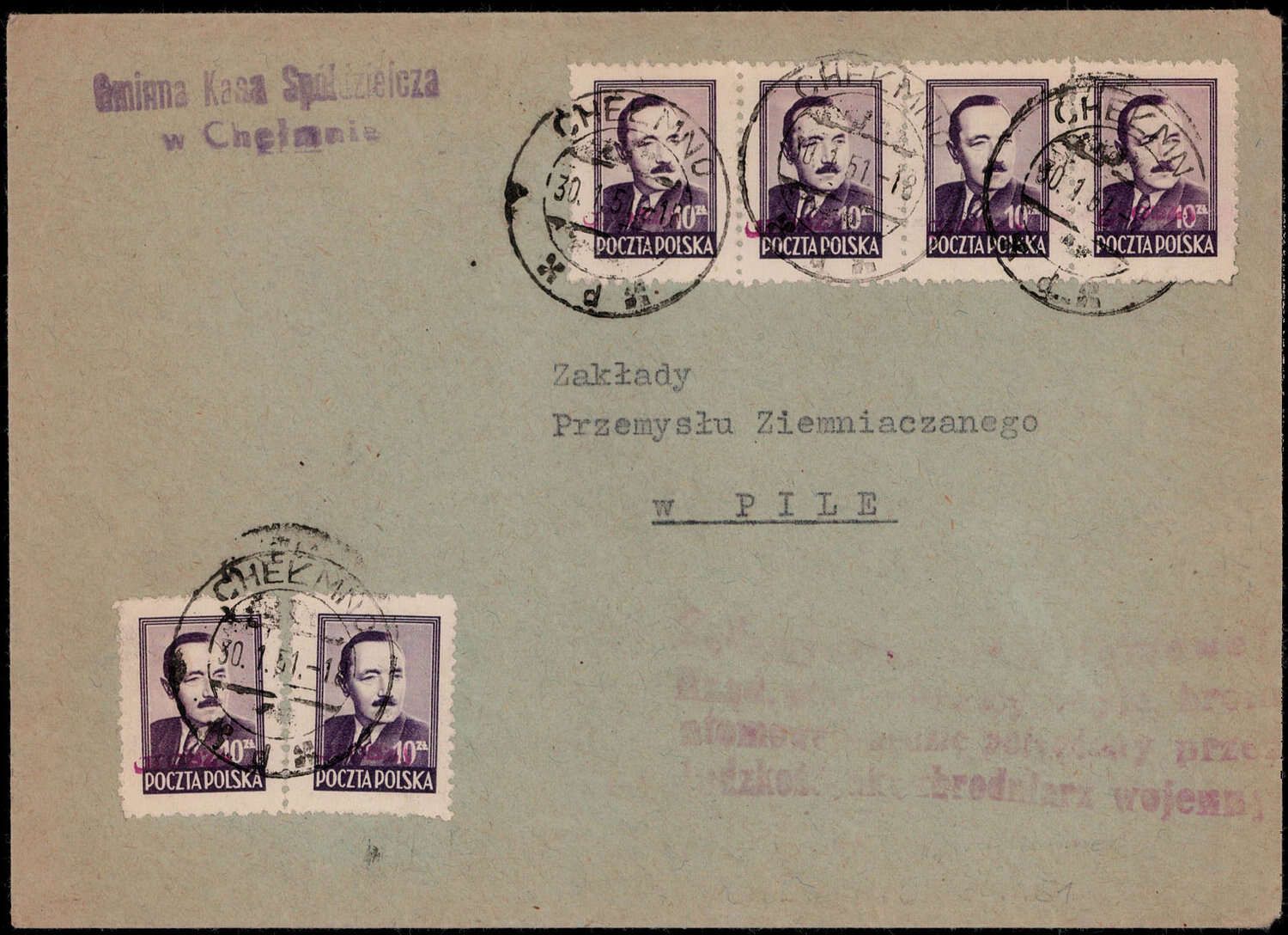 "CHELMNO", rotvioletterGroszy-Überdruck Type 2 mit verstümmeltem "G" auf Bedarfsbrief 30.1.51 , ex Sammlung Günter Rost