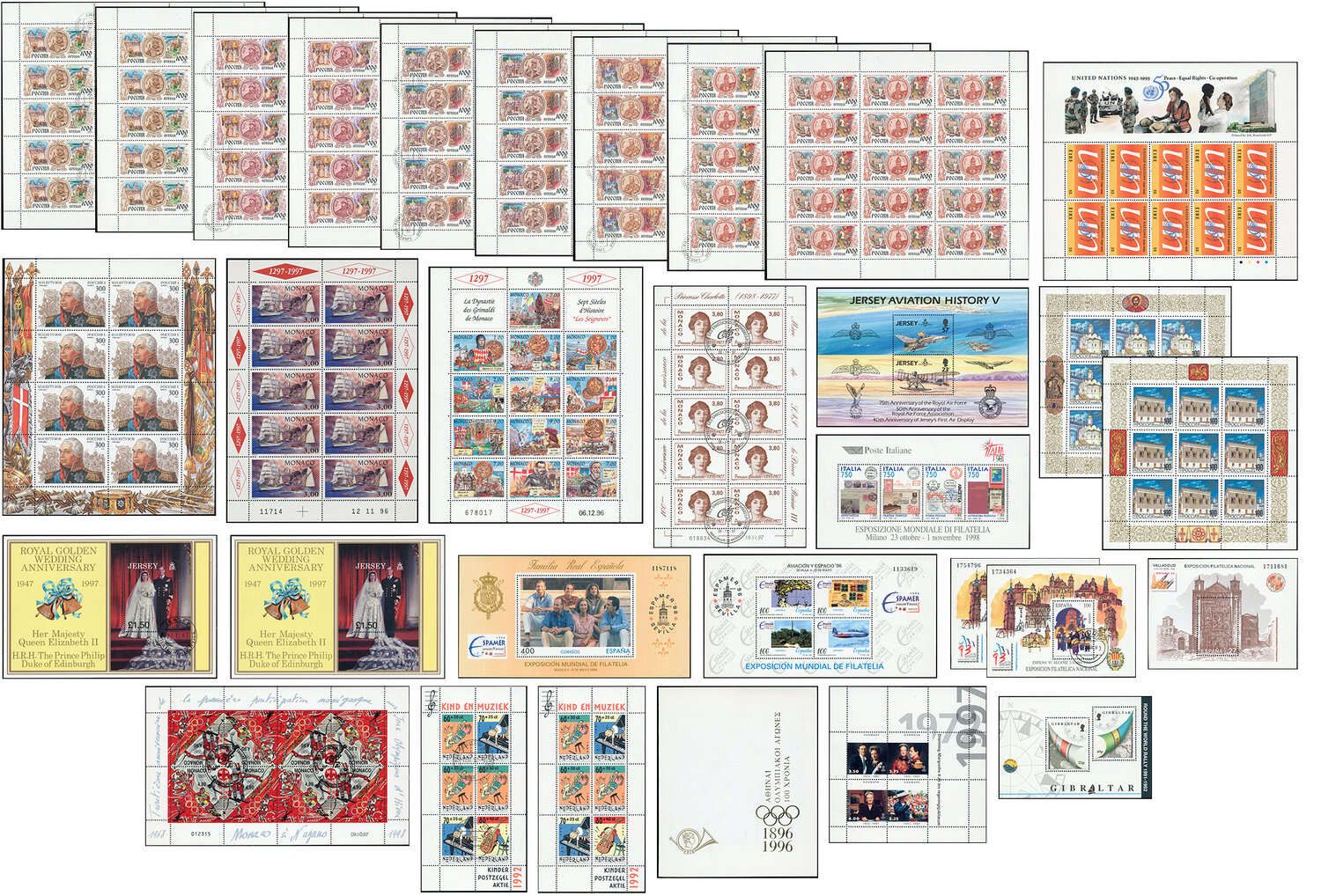 EUROPA: Fünf Schachteln mit umfangreichem Block- und Kleinbogenstand der Jahre 1992-97 aus Abobezug, teils mehrfach geführt