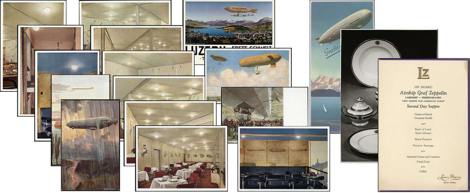 ZEPPELIN ANSICHTSKARTEN U.A.: Nach Zeppelinen wie Goodyear, Akron, Lebaudy und den Deutschen Luftschiffen wie Parseval und Knick aufgebaute Spezialsammlung. Eine größere Menge an Karten vorhanden, dabei auch die 10 Postkarten der Zeppelin- Innenansichten, Privatganzsachen Weimar, Fotos, Vignetten und Speisekarten u.v.m. Diese Sammlung wurde mit sehr viel Sachverstand und finanziellem Aufwand zusammengetragen. Vieles einzeln auf Auktionen gekauft. In dieser Form nicht mehr so schnell zu finden!