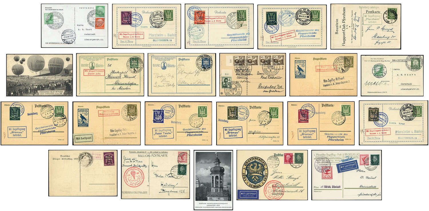 SEGELFLUG- UND BALLONPOST: Nette Partie mit 30 Belegen, schöner Teil Segelflüge Büchelberg Pforzheim, 1. Hessische Segelflugpost, Freiballon Osnabrück