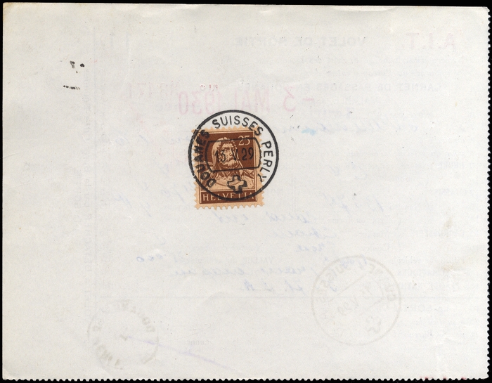 PERLY: 1929, "Volet de Sortie" über den TC France rückseitig frankiert mit 1x MiNr.207 als offizieller Gebührennachweis für einen PKW Citroen C4