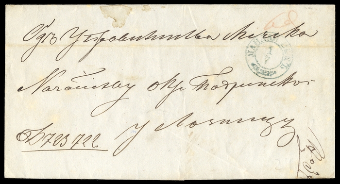 "MAJDANPEK 1.7.", K2 in BLAUGRÜN (Handbuch nur bis 1863) auf Brief aus 1866 mit Inhalt nach Loznica, übliche Faltung, Beförderungs-und Alterungsspuren