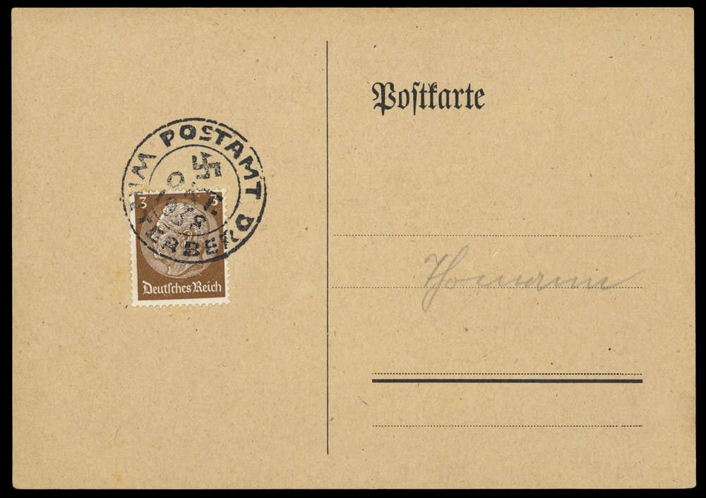 "WINTERBERG POSTAMT OKT. 1938", Sonder-K2 auf DR 3 Pf Hindenburg auf Postkarte, blanko