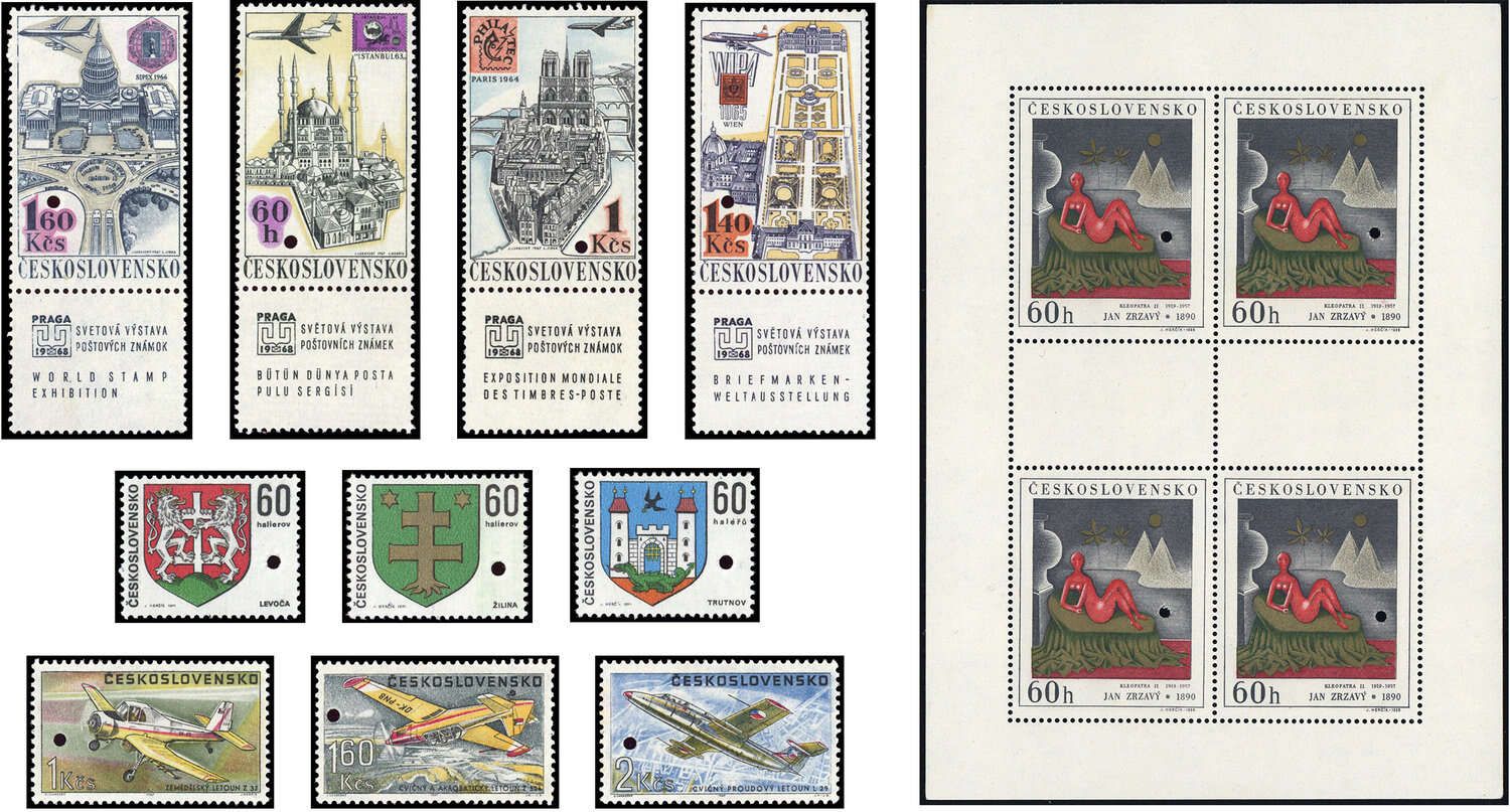 TSCHECHOSLOWAKEI MUSTERMARKEN: Über 400 verschiedene postfrische Ausgaben als Mustermarken mit der "Muster"- Durchlochung bis 1992. Dabei sind auch komplette Sätze, Dauerserien sowie zusätzlich 28 Blockausgaben und 69 Kleinbögen! Eine interessante Bereicherung jeder Tschechoslowakei- Sammlung mit diesen nicht alltäglichen Ausgaben, welche offiziell nur an wenige Personen, u.a. zu Pressemitteilungen zugesendet wurden.